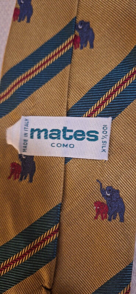100% Silk Tie Hand Made in Italy Mates Como with Elephants Vintage Early 90's