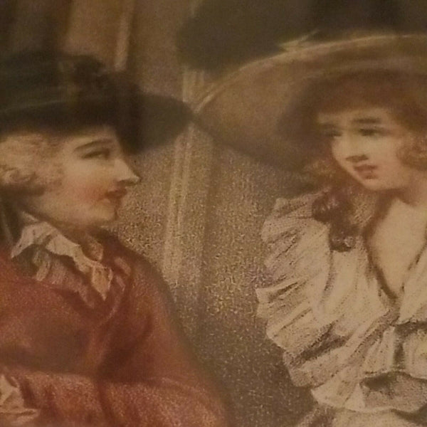 A lifetime worth of collecting, it must have taken, to put this rare 18th century matching art collection together.  All framed equally in antique gold leaf frames (some frames shoe chips and flakes with minor areas with scratches, mostly in good condition).  The art engravings themselves have a date of 1786 with each piece having been engraved by the master engraver J.R. Smith.  Each piece titled, dated, and signed on the plate with a description of what is being depicted.  Friends, this rare set of Artwork is  preserved in magnificent condition under glass and each subject is whimsical and absolutely very interesting.  The Elopement, Dressing for the Masquerade, Latitia with Her Parents, The Fair Penitent, The Virtuous Patent, and my personal favorite The Tavern Door where a swashbuckler is making an overture to a lovely red head with another envious girl looking on the proceedings.  A collection such as this surely must have cost over $1000 just for the framing and the museum quality matting.  Also 6 sold together.