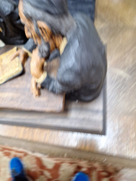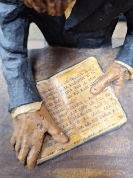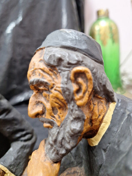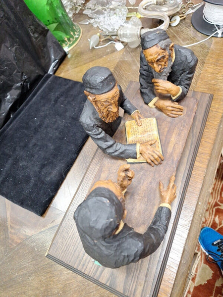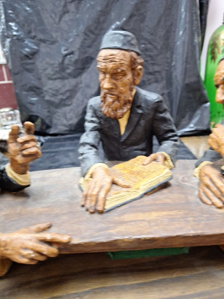 This stunning sculpture of three rabbis is a must-have for any Judaica collector. Measuring 17 inches in height and 8 inches in width and depth, it is a beautiful piece that will add a touch of elegance to any room. The intricate details and craftsmanship of the sculpture are truly impressive and a testament to the rich traditions of Judaism.