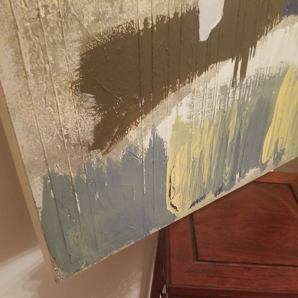 A finely painted probably mid century abstract Expressionist painting having raised thick brush strokes, 100% hand painted, New York School abstract Expressionist art. Solid stretcher with a small part of a gallery label still intact on the back partially as I point to in one of my images.