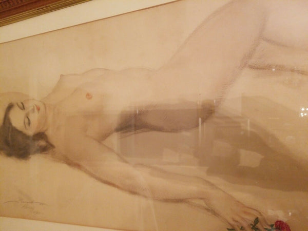 A rare 1950's pinup art of a nude girl all original one of a kind painting water color/ pastel 100% an original by the artist signed. A real beauty, painted with breasts showing in a sensuous pose. Large size. With original date signed under the artist's name lower left.