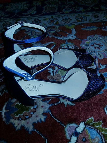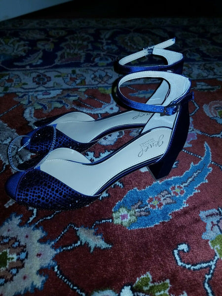 Badgley Mischka Size 9 Women's Shoes Jewel Sycamore Navy Satin.