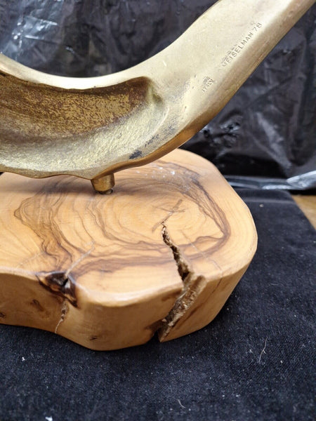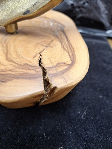 This beautiful brass Jewish Shofar measures 9.5" X 8" and comes with a wooden base. Made in Italy. It is a unique piece that would be a great addition to any collection of Jewish memorabilia.