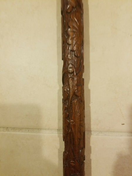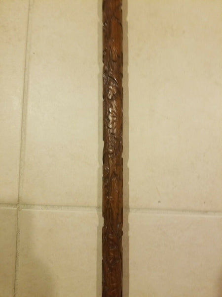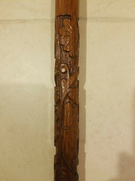 Carved Wooden Cane/ Walking Stick 36.625" HANDLE IS LOOSE!!