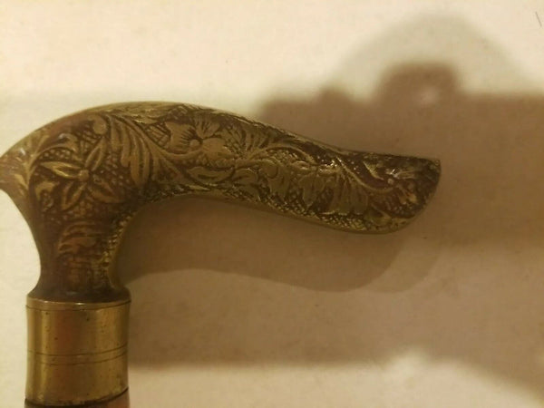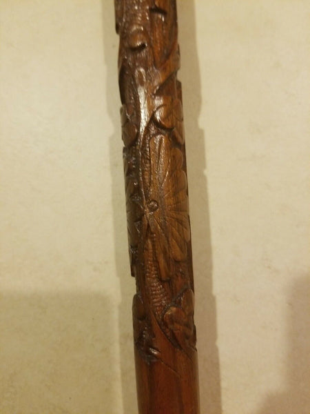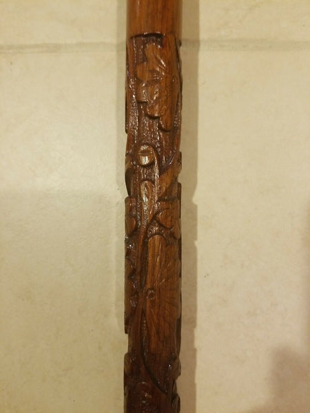 Carved Wooden Cane/ Walking Stick 36.625" HANDLE IS LOOSE