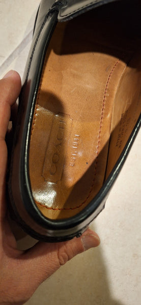 Coach Black Shiny Leather Loafers Made In Italy Size 8.5 D P914 Eric N8