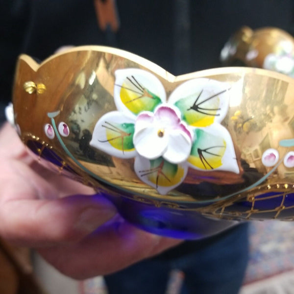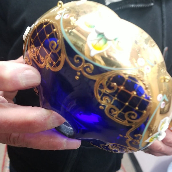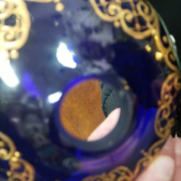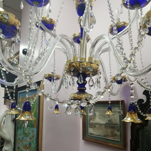 Czechoslovakia Chandelier 12 Light Crystal Overlay With Enamel Cobalt Blue