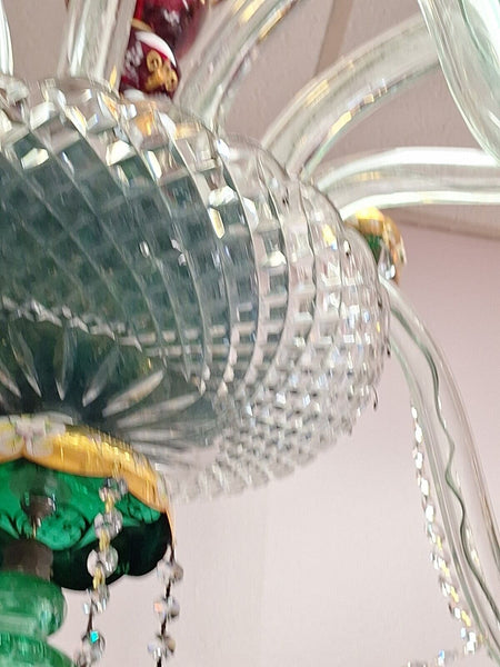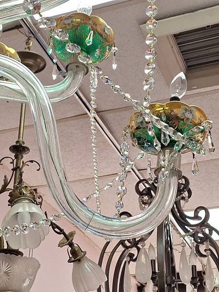 Czechoslovakian circa 1950 Overlay 12 Light Chandelier
