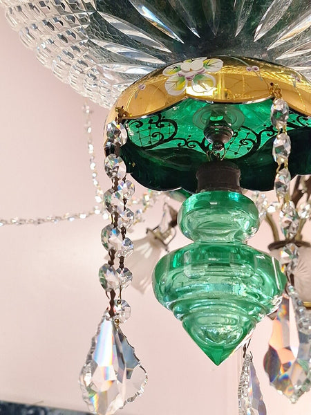 Czechoslovakian 1950 Overlay 12 Light Chandelier