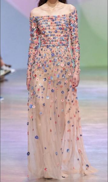 Elie Saab Women's Evening Gown Off-Shoulder Bead Embroidered Size 0-2