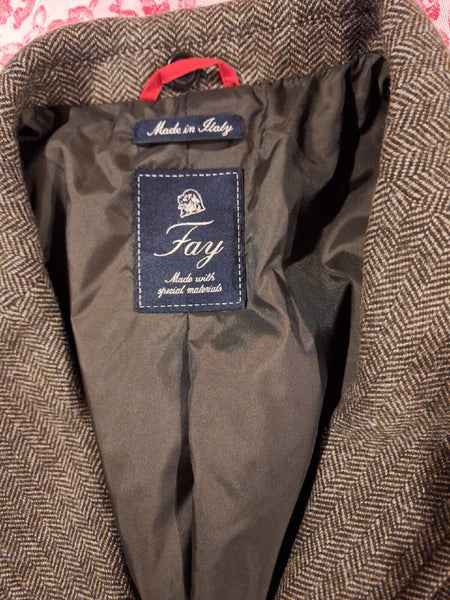 Fay Men's Tweed Wool Blend Jacket With Elbow Patches Made In Italy Size 42.