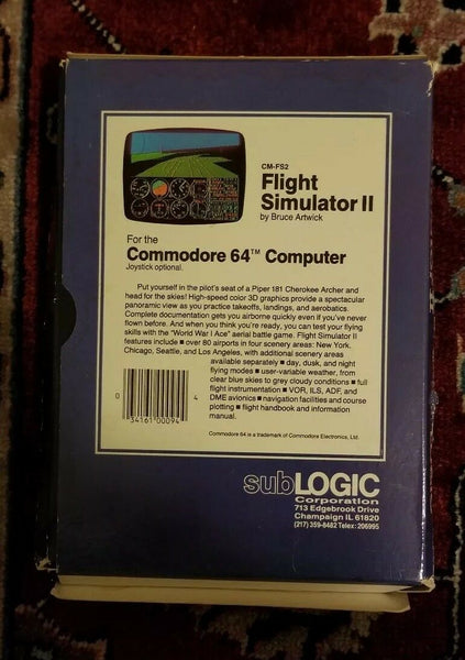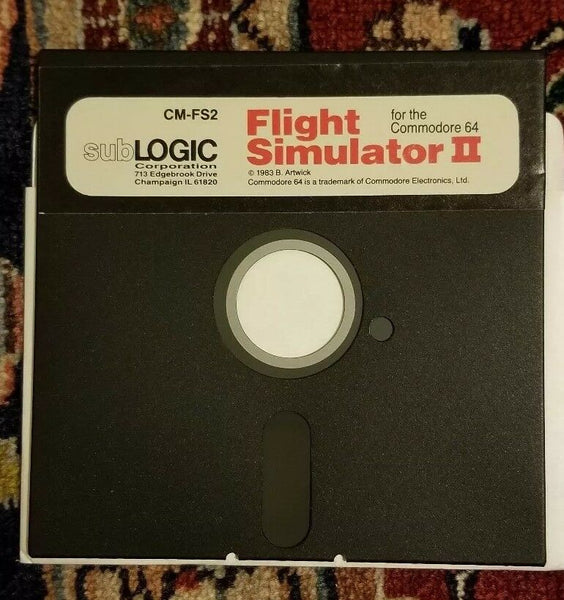 Flight Simulator II CM-FS2 SubLOGIC for Commodore 64 by Bruce Artwick.