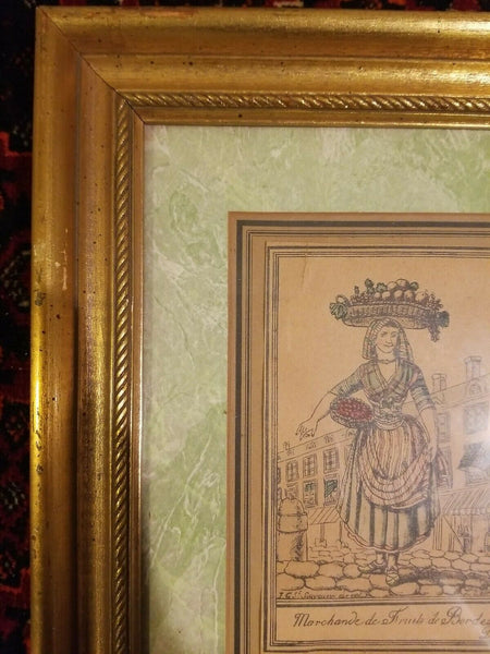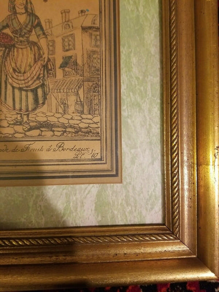 Framed Engraving by Jacques Grasset de Sainte Sauveur and Labrousse titled "Marchande de Fruit de Bordeaux". It was done for Sainte-Sauveur's c. 1797 publication Costumes de different pays.