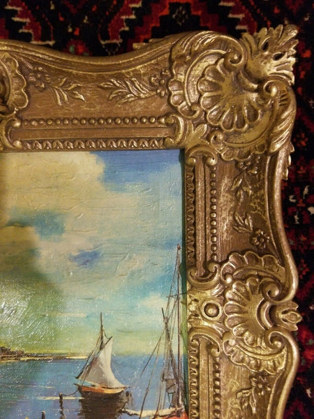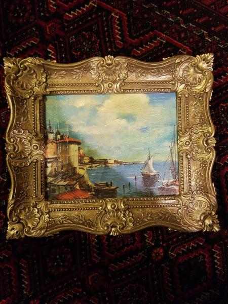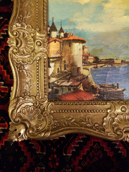 Framed Painting On Canvas Of Mediterranean Coastal Scene (Possible Greece).