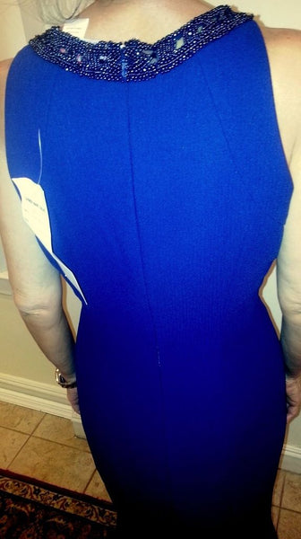 Gorgeous Navy Sleeveless Beaded Carmen Marc Valvo Evening Gown Size 4