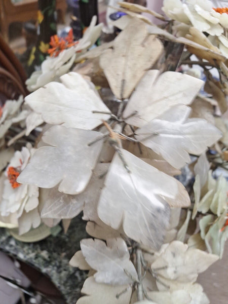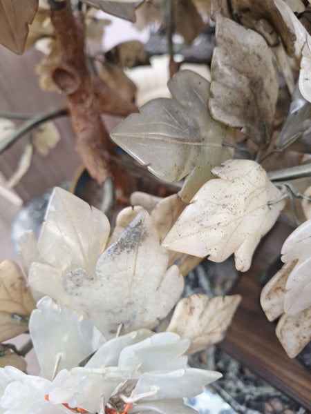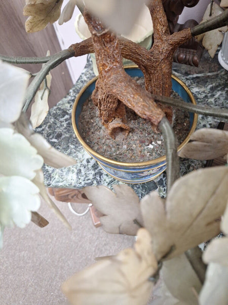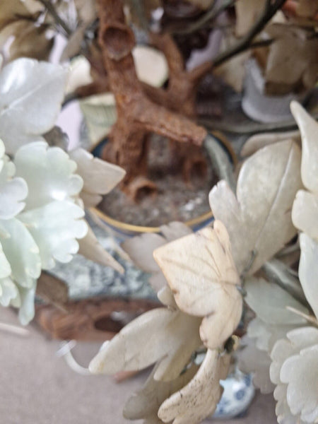 The blue color of the flower pot adds a pop of color to any space.  The flowers are made of Jade.   Whether you are using it as a centerpiece or simply as a decorative accent, this flower pot is sure to impress.