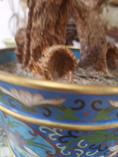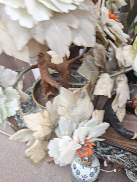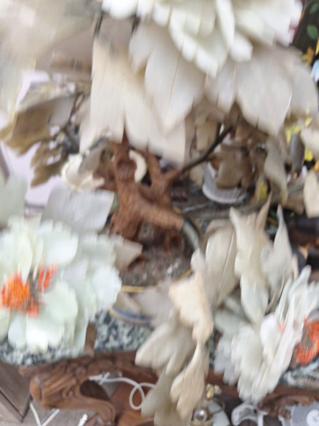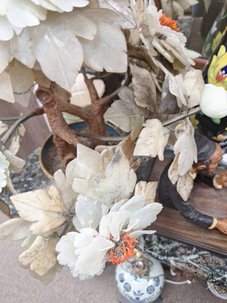 Hand Painted Japanese Flower Pot With Artificial Flowers With Jade 19.5" Tall