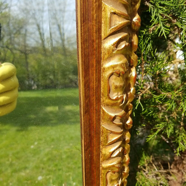 A magnificent palace sized Italian designer gilt wood mirror with beveled glass mirror original. Fine quality double gilding much like a frame you would see on an old master painting in a museum with high quality mirror glass with precise beveling, very rich. Friends, such a mirror originally must have cost tens of thousands of dollars and sourced painstakingly by a known New York City designer or interior decorator. This is fresh out of a north shore gold cost long Island estate. No damages of any kind on the mirror, wonderful natural minor scoffs or scratches on the gilt frame.