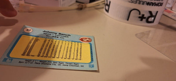 Johnny Bench 1982 Fleer 57 Baseball Card IMPERFECT CONDITION, SEE PICS