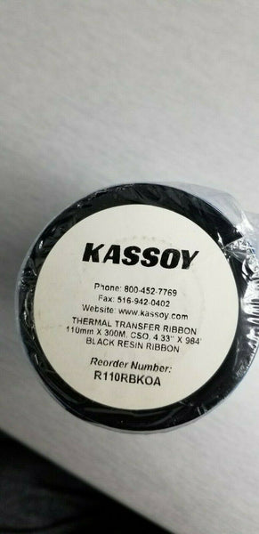 Kassoy THERMAL TRANSFER RIBBON 110MM X 300M CSO 4.33" X 984' R110RBK0A Resin Ribbon