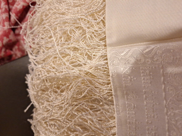 So I started wearing this 1980's Tallit every morning for synagogue until one day one of the congregants said "you're wearing your bar mitzvah tallit, right? You need to go to the synagogue office and buy a new, modern one." I was embarrassed and bitter at first but I realized he was right. All the other congregants were wearing a different type of Tallit. I went and purchased a new Tallit and never wore this one again. So this is why I am selling this Tallit.