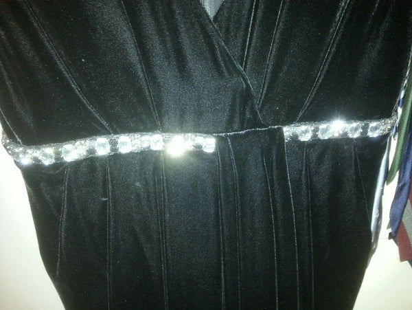 Ladies black velvet magaschoni collection cocktail dress with rhinestones size 6, perfect for new year's eve.