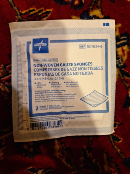 Medline Sterile Non-Woven Gauze Sponges 4" Square REF NON21446 36 PACKS OF 2.