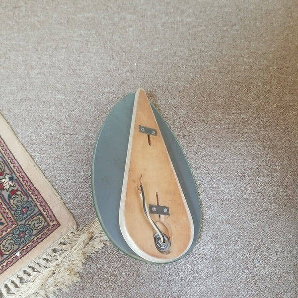A very unusual large tear drop shape Italian mirror back Sconces. Having 2 scalloped inverted candle holders affixed to a mirror back with paint decorated back wood stylized. Italian circa 1960's. With working wiring.