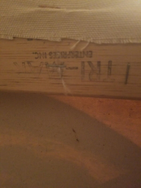 This fine large original painting can be displayed horizontally or vertically. Mint all original condition. Please note it has a handmade high quality marked stretcher hand made wood as you can see in my images. Experts, please contact me with thoughts.