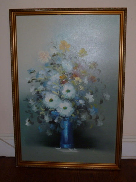 Framed Oil Painting of Flowers 26" X 38" (66cm x 97cm)