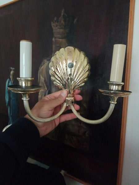 Pair of Mid century Modern Hollywood Glamor Shell Sconces.