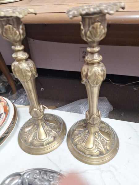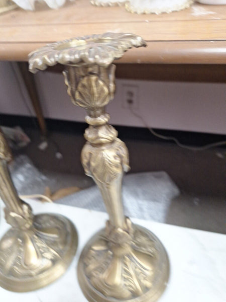 Pair Of Vintage Brass Candlesticks 13" Tall