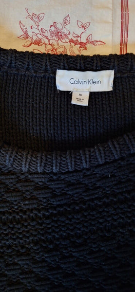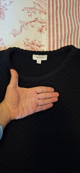 Rare Men's Calvin Klein Black Knitted Cotton Blend Sweater: IMPERFECT CONDITION!
