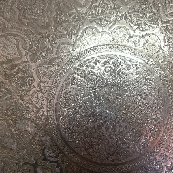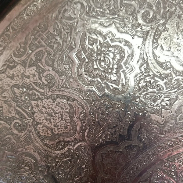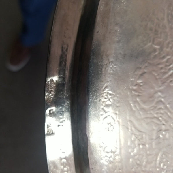 Round 84 Silver Tray Hand Worked 1950's signed.