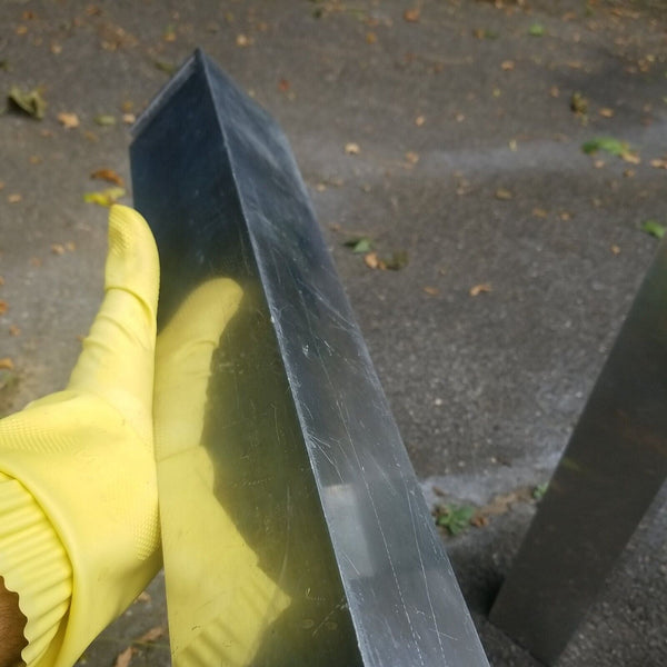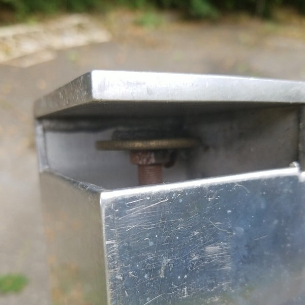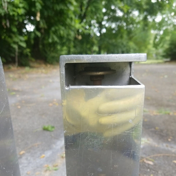 A rare set of designer chrome legs having space for glass to slide in with a screw mechanism on bottom where the glass can be tightened. This is an original mid century Modern authentic designer article of high quality furniture. Very desirable. The chrome is now nicely aged with light scratches throughout and shows wear consistent with age giving it the authentic mid century Modern feel. Different size glass can be fit in to these marvelous designer legs depending on your decorative needs. Ready to go, just need glass!