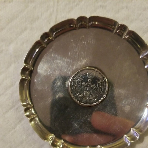 Sterling Silver 850 Small Plate With Chinese Or Japanese Coin.
