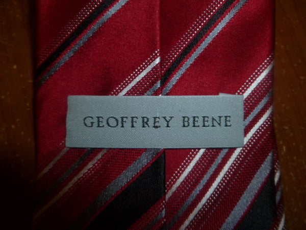 Striking 100% Silk Geoffrey Beene Fire Engine Red Tie with Black, White, & Gray Stripes