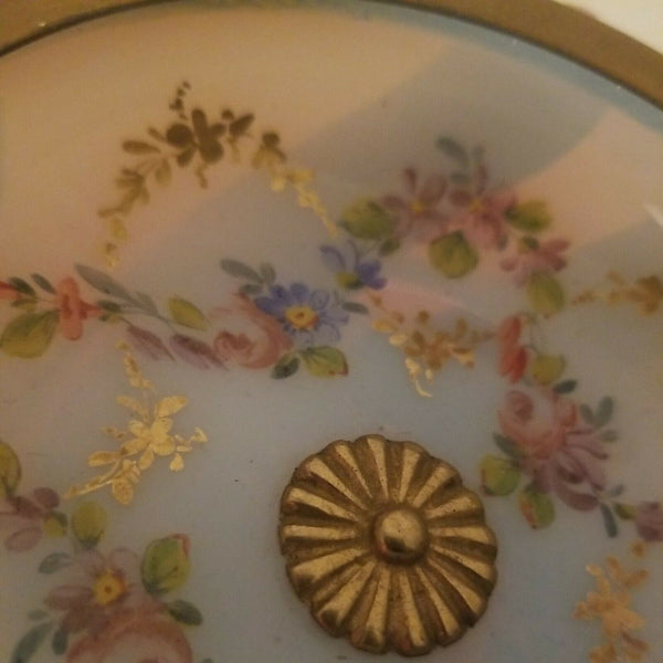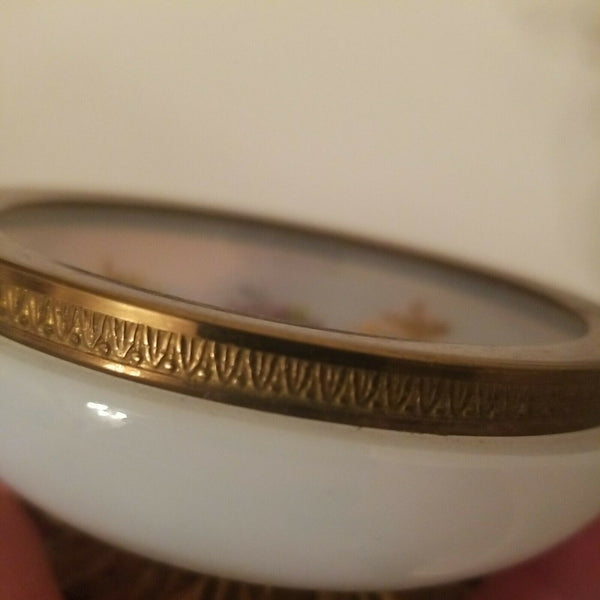 A mint condition rose opaline crystal Baccarat Vessel to put jewelry in or as a decorative object. Having hand painted enamel gold floral decoration with heavy gilt bronze base and original gilt dorè mounts. Highest quality as a vitrine object of Vertu or perfect for a ladies vanity to put diamond earrings in. No breaks, cracks, or damages. No wear. The gold now naturally tarnished for a wonderful antique patina.