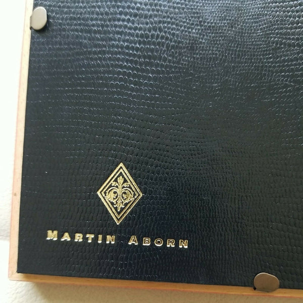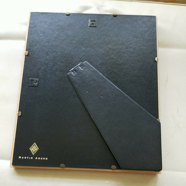 A vintage new old stock designer Martin Aborn wood chinoiserie gold decorated frame measuring a large 10.5" x 12.5" with the frame opening measuring 4.75" x 6.75". Original leather backing. Never used. Gold embossed Marin Aborn signature. With diamond insignia. Original glass cover intact. No scratches or damages.