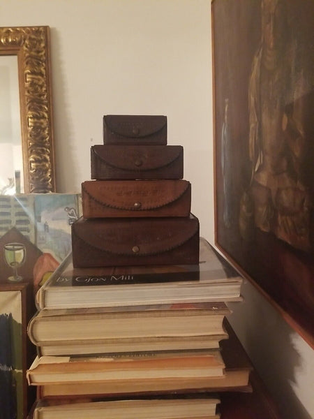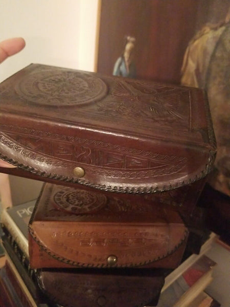 Vintage Leather Collection of 4 Jewelry Boxes Embossed