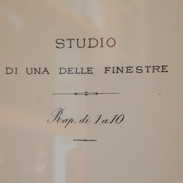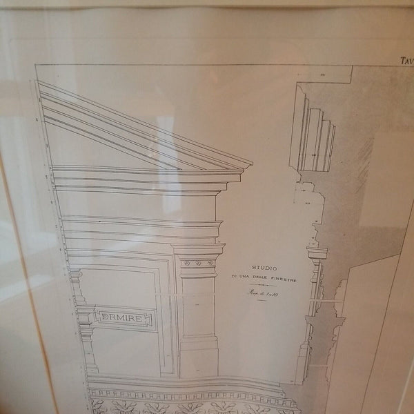 A crisp sharp quality limited edition Architectural Etching vintage and original Palazzo Bartolin Piazza S. Trinita Studio Di Una Delle Finistre.  Authentic Italian Etching cleanly framed in a copper color Modern frame archival matting.