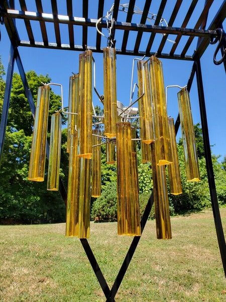 Vintage mid century modern crystal amber chandelier.