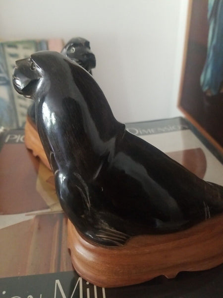 Vintage Pair Of Carved Seal Eskimo Sculptures