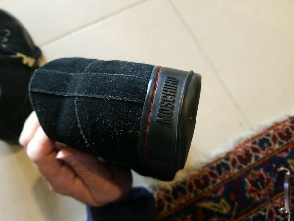 Women's Black Suede Moschino Ankle Length Boots Size 7 with Shearling Inside