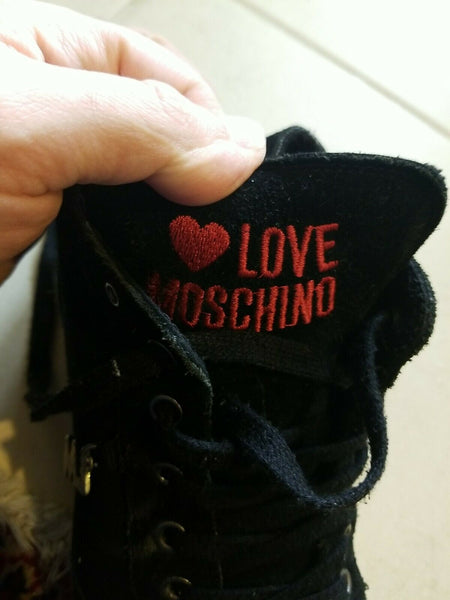 Women's Black Suede Moschino Boots Size 7 with Shearling Inside. Condition is "Pre-owned". Shipped with USPS Priority Mail.